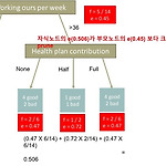 Decision Tree + C4.5알고리즘 c4.5 특징1. 수치형 자료를 처리한다.2. 불완전한 데이터를 처리한다.3; 가지치기로 과적합을 해결한다. GainRatio Information Gain의 문제점은 많은 측정값을 가진 속성으로 편향된다는 것이다. ID_CODE와 Outlook의 Information Gain을 구해보자. Gain(Outlook) = E(Play) - E(Play, OutLook) = 0.94 - 0.69Gain(ID_CODE) = E(Play) - E(Play, ID_CODE) = 0.94 - 0 ID_CODE Outlook Play? 1 sunny No 2 sunny No 3 overcast Yes 4 rain Yes 5 rain Yes 6 rain N..
